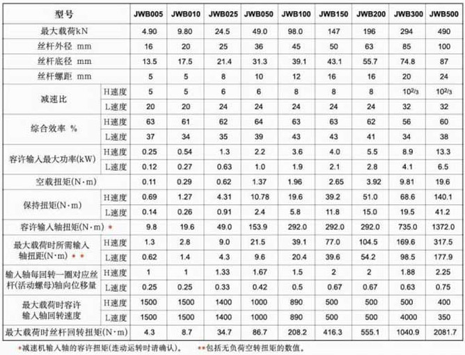 JWB滾珠絲桿升降機基本型號參數表-德州啟力傳動